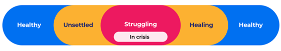 Beyond Blue have designed a mental health continuum to assist in the discussion of social and emotional wellbeing. Mental health can change gradually over time, and understanding this can help you to know when you need to seek professional support. For more information, please click here.