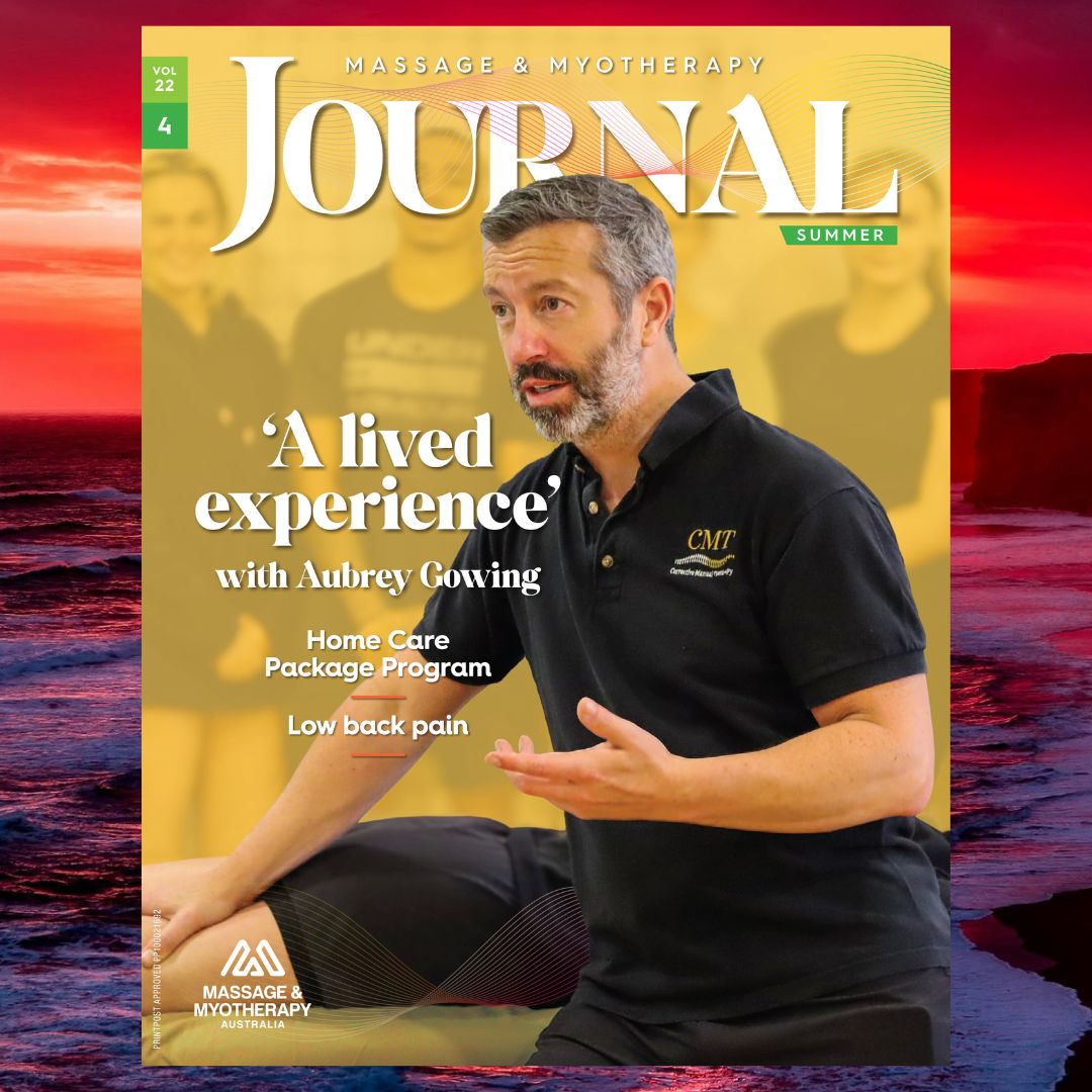 The articles in the Summer 2024 issue of Massage & Myotherapy Journal are now available online to all members and Journal subscribers via the Massage & Myotherapy Journal Library. Featured topics include an orthopaedic case study by Aubrey Gowing, a Home Care Package Program Q&A, articles that focus on low back pain, and a sneak peek at the 2025 National Conference.